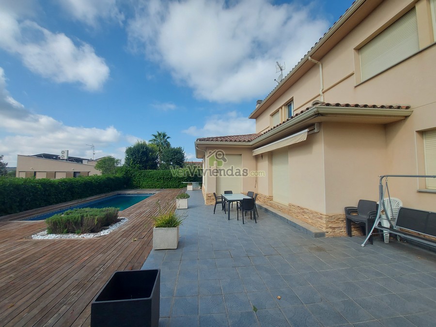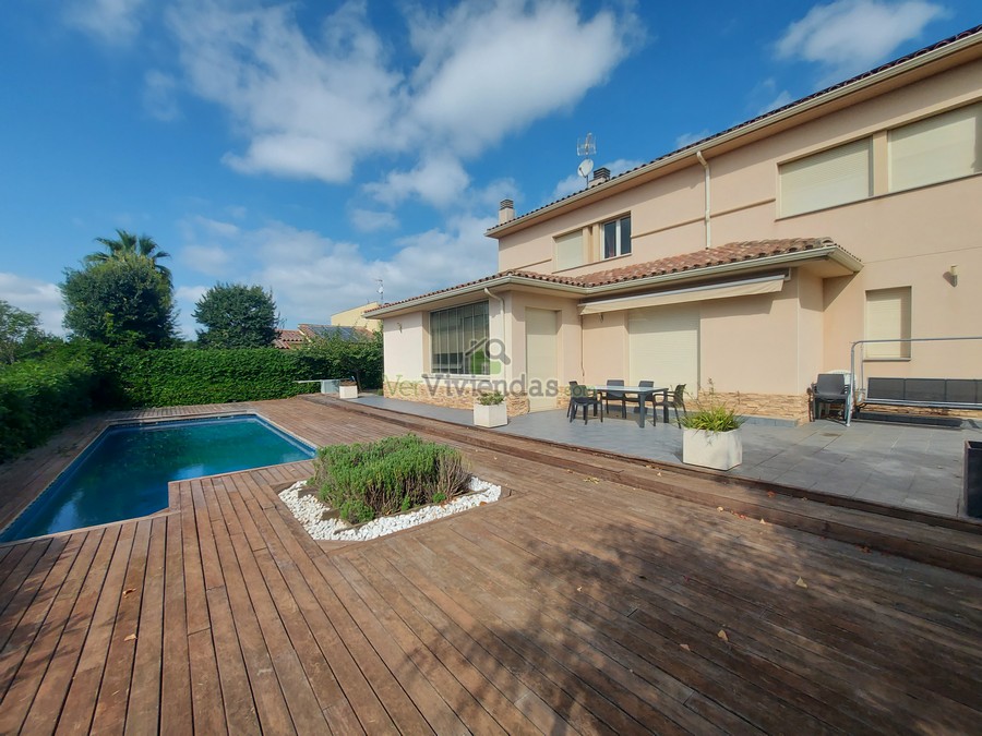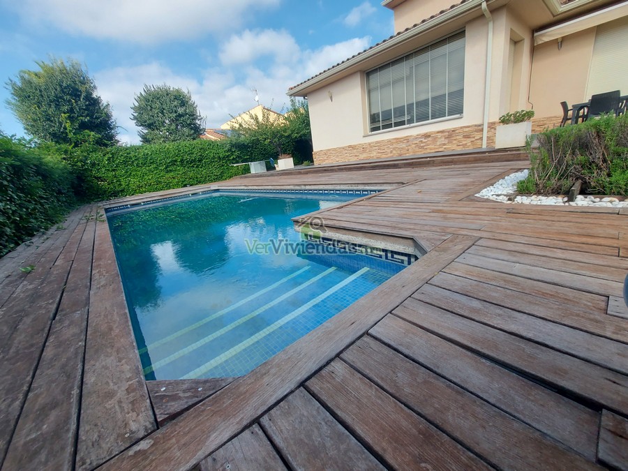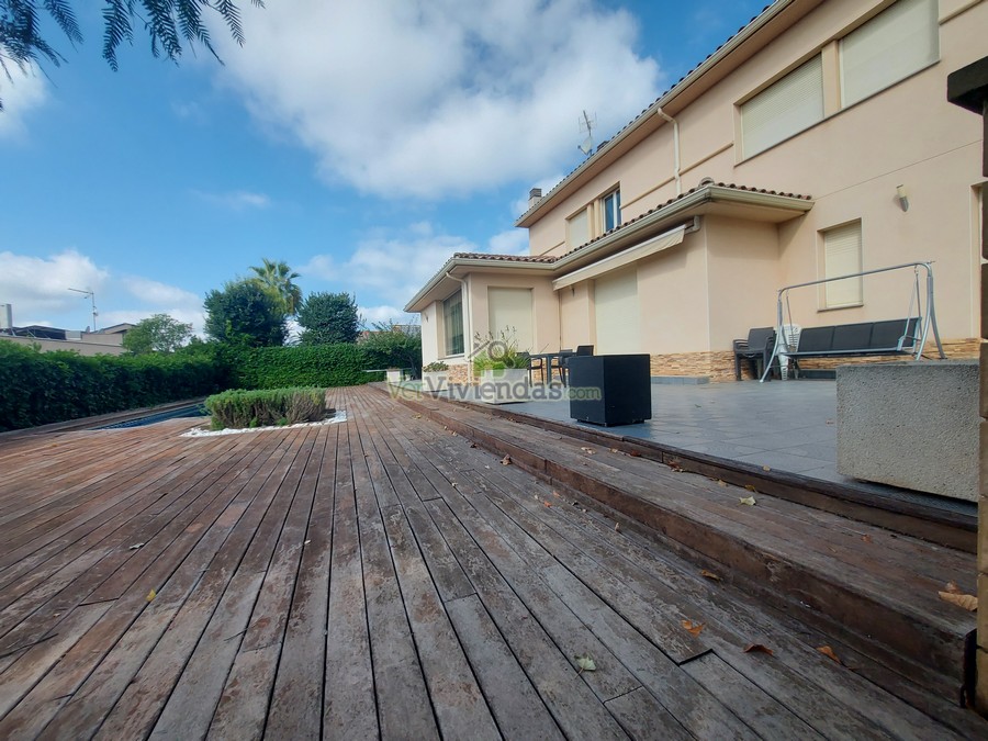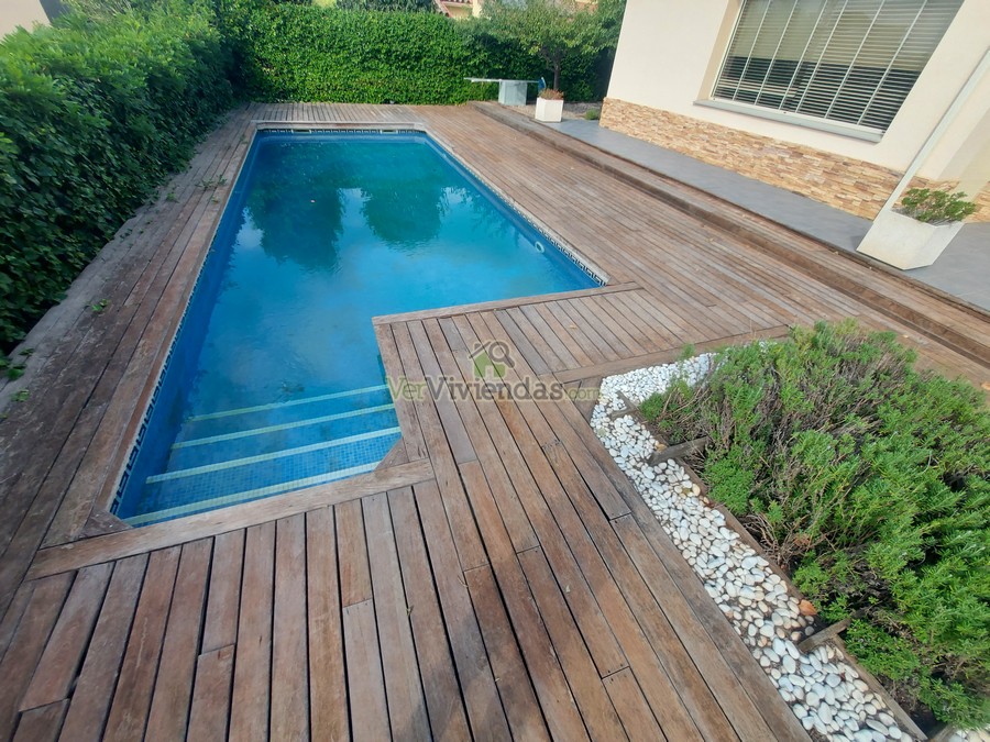 En el exterior encontramos preciosas zonas destinadas a jardín (muy cuidado), zona de barbacoa y espectacular zona de piscina con increíble tarima de madera a su alrededor.