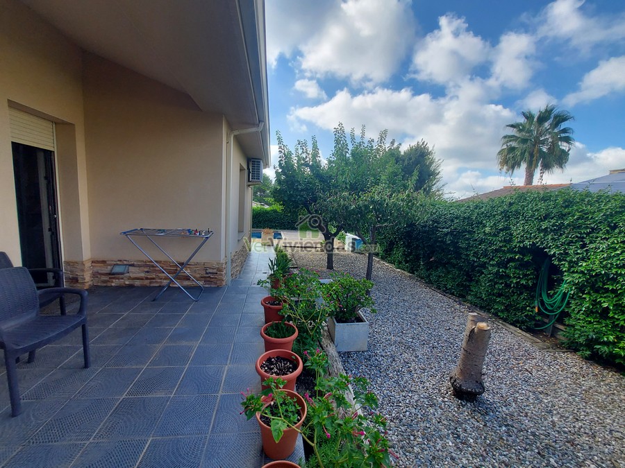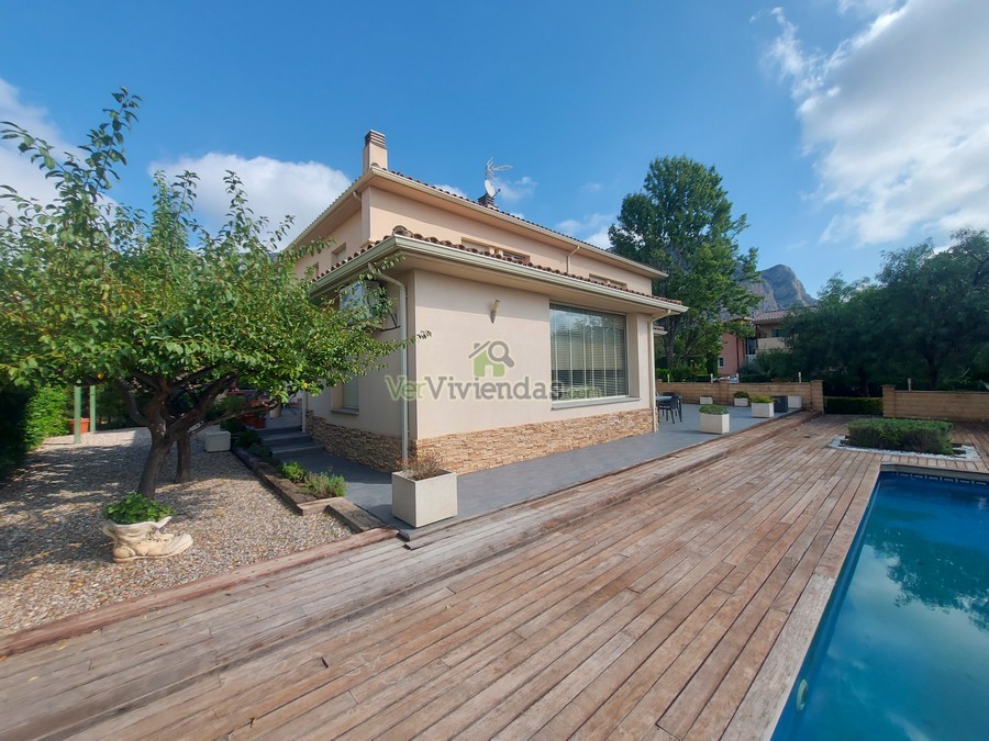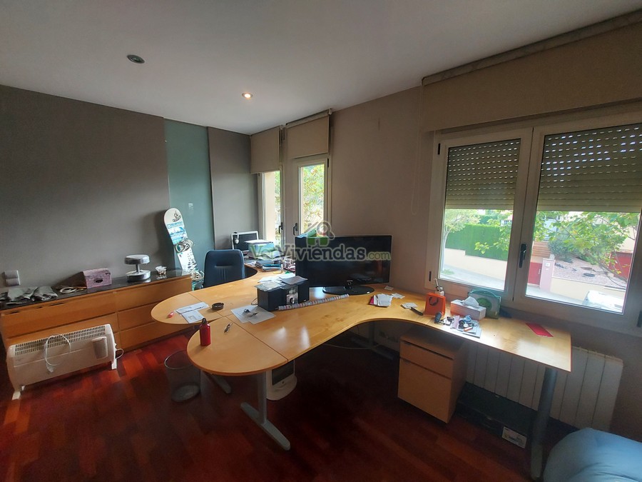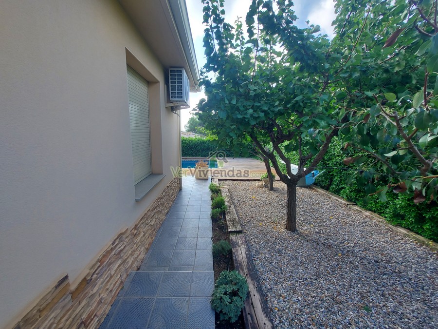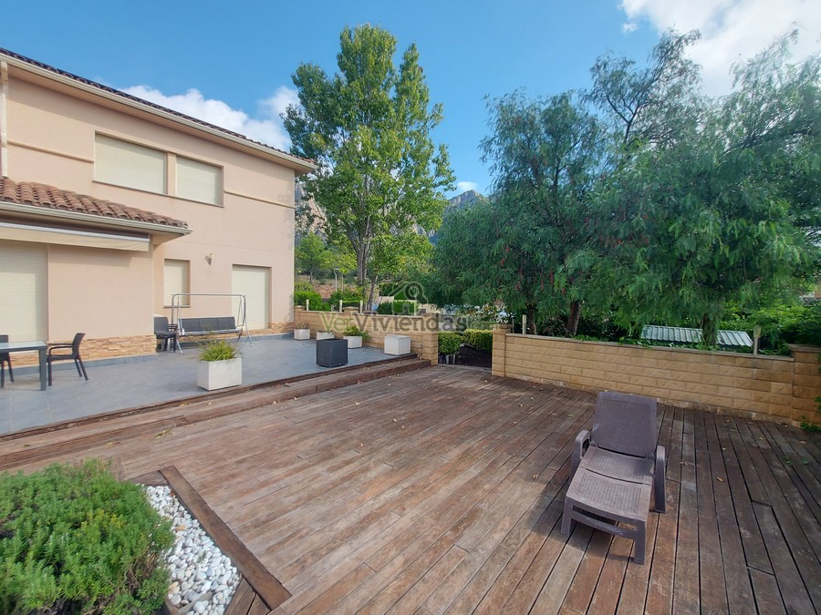 En el exterior encontramos preciosas zonas destinadas a jardín (muy cuidado), zona de barbacoa y espectacular zona de piscina con increíble tarima de madera a su alrededor.