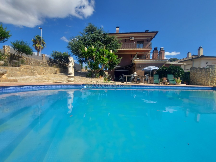 En el exterior encontramos varias zonas destinadas a jardín muy cuidado, varias terrazas, garaje exterior cubierto con capacidad para 2 vehículos adicionales, espectacular zona de piscina de gran tamaño y bonita zona de barbacoa para disfrutar con amigos y familia.