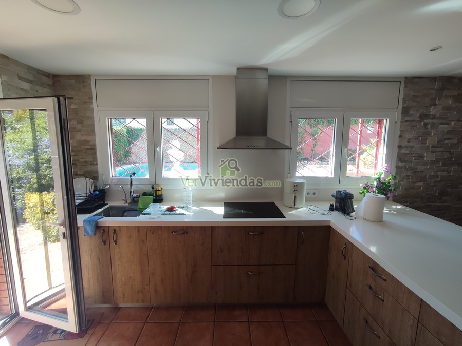 En planta principal encontramos un bonito recibidor que nos da acceso al amplio salón/comedor con chimenea abierto a gran cocina completamente reformada y equipada y salida directa a la zona de la terraza y piscina. En esta misma altura encontramos 1 dormitorio y un baño completo.