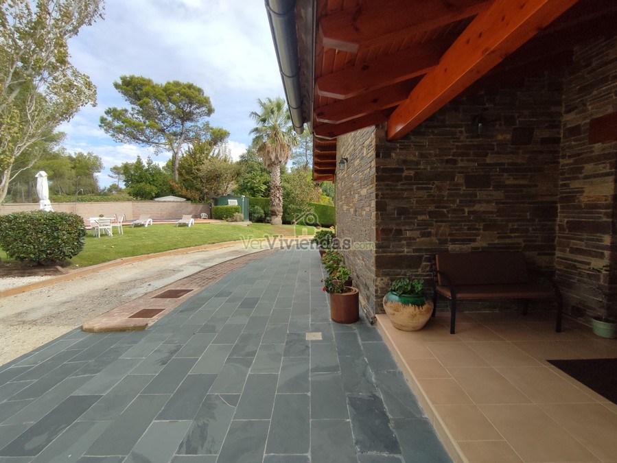 En el exterior encontramos varios porches con zonas de relax para disfrutar con amigos y familia. El jardín está muy cuidado (cuenta con riego automático) y encontramos varias zonas de terraza y zona pavimentada. En un rincón de la parcela ubicamos la gran piscina.