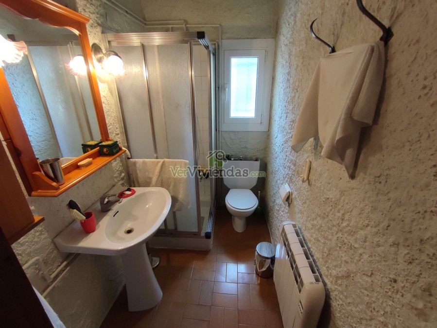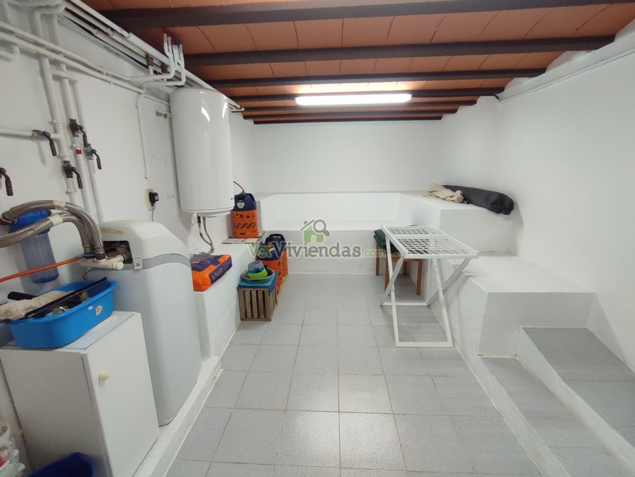 Mediante la bajada de pocas escaleras accedemos a la altura inferior donde encontramos un gran salón secundario con chimenea utilizado como gran despacho/oficina a día de hoy. En esta altura también ubicamos una estancia usada como zona lavadero y una habitación usada como almacén/trastero. Para dar servicio a esta altura encontramos un baño completo con plato de ducha.