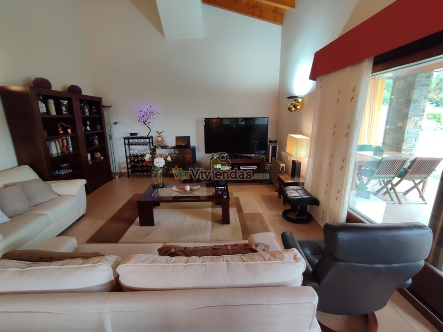 Al entrar nos recibe un magnífico recibidor que nos da acceso al gran salón/comedor con salida directa al porche con zona chillout que ofrece unas vistas increíbles a las montañas y su naturaleza. Mediante un distribuidor, accedemos a gran cocina con isla totalmente equipada con salida directa a la zona del jardín, 3 habitaciones dobles y 2 baños completos con plato de ducha.