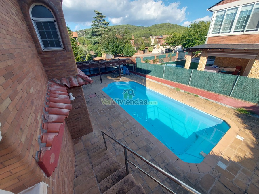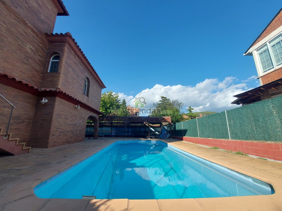 En el exterior encontramos un fantástico porche en el que pueden entrar tranquilamente tres coches, dispone de pérgola de madera y zona de barbacoa. También encontramos la zona de la piscina, terrazas y excelentes zonas destinadas a jardín