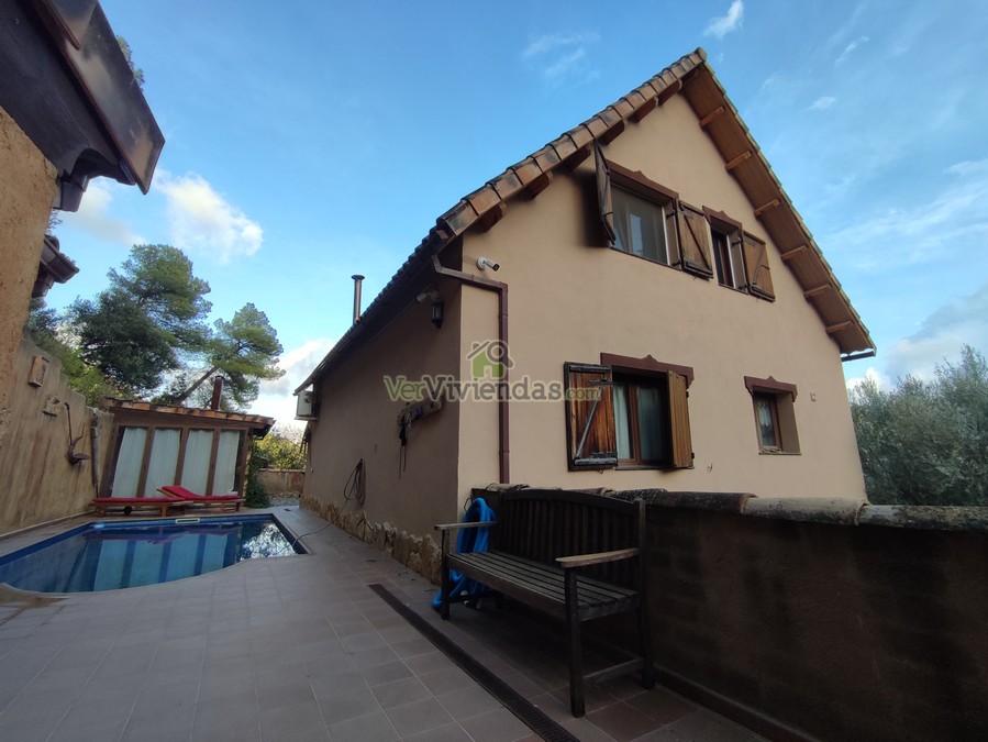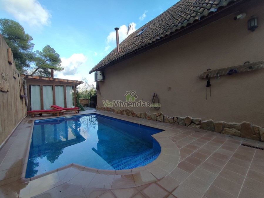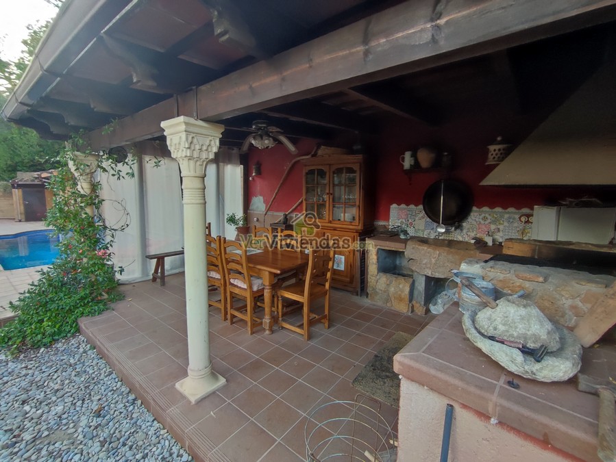 En el exterior encontramos zonas ajardinadas, la zona de la piscina y junto a ella un espectacular porche con zona barbacoa para disfrutar con amigos y familia.