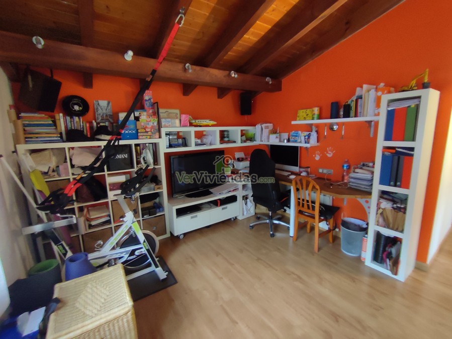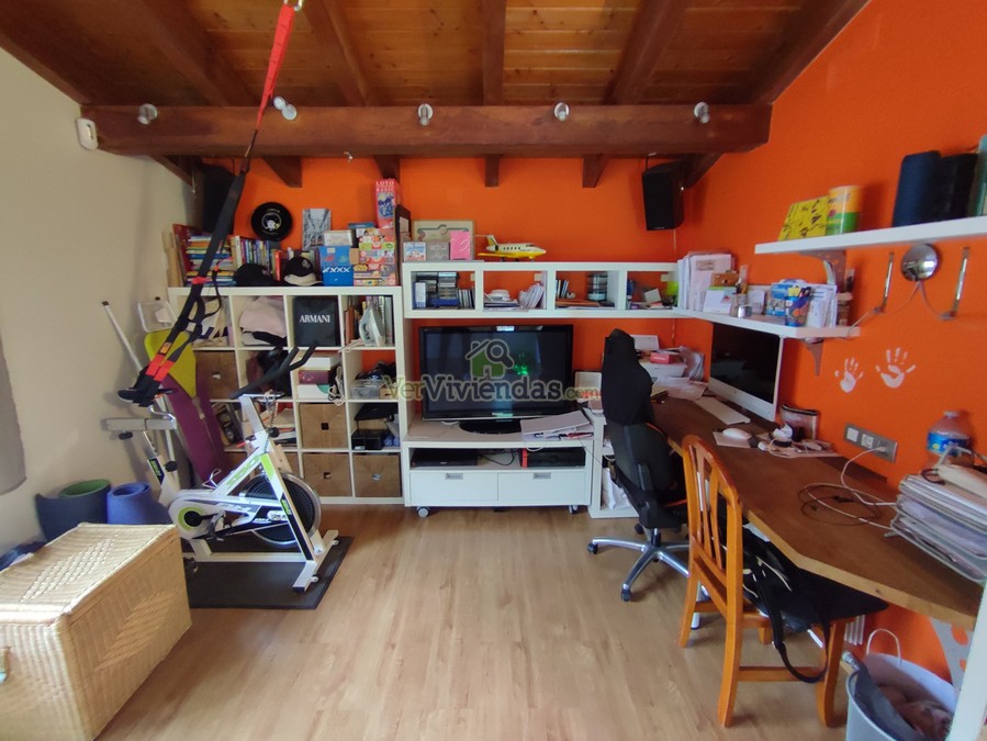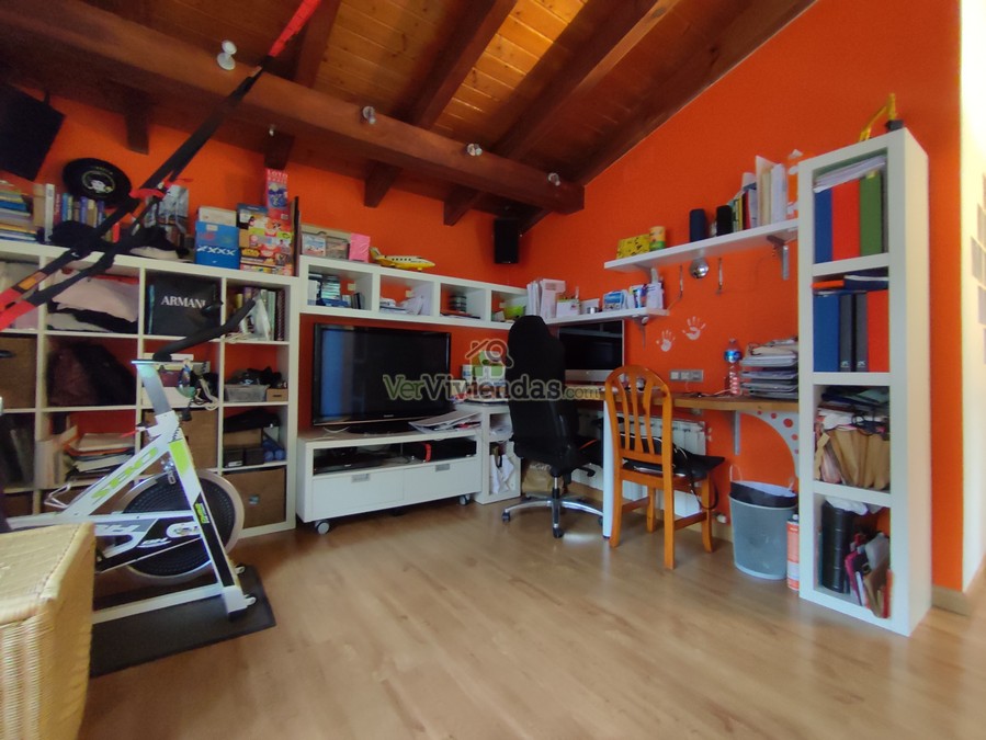 Planta Superior: Accedemos a ella mediante escaleras situadas en el recibidor de la planta principal. En esta altura con preciosos techos abuhardillados, encontramos una estancia ideal para destinar como estudio/oficina/despacho, un baño completo con gran bañera y plato de ducha y la habitación principal con estancia destinada a zona vestidor.
