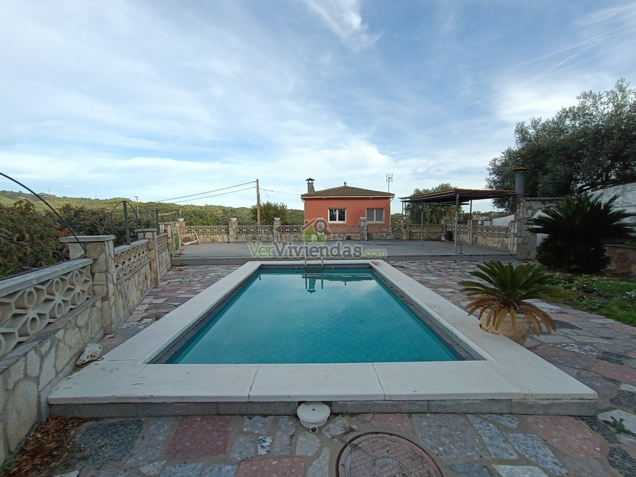 En el exterior encontramos la zona de la piscina con ducha exterior, varias terrazas, zonas destinadas a jardín, zonas ideales para destinar como huerto y el precioso porche con zona barbacoa y cocina exterior para disfrutar con amigos y familia. También encontramos varios garajes independientes para almacenar dentro de la finca varios vehículos.