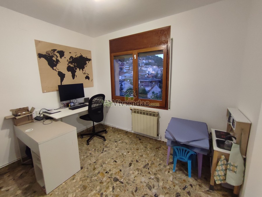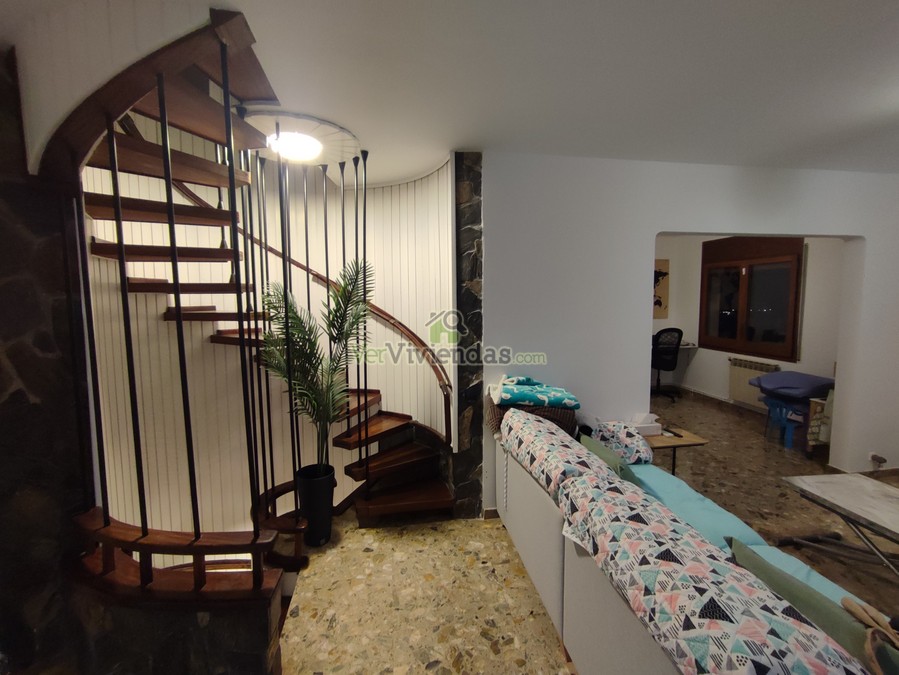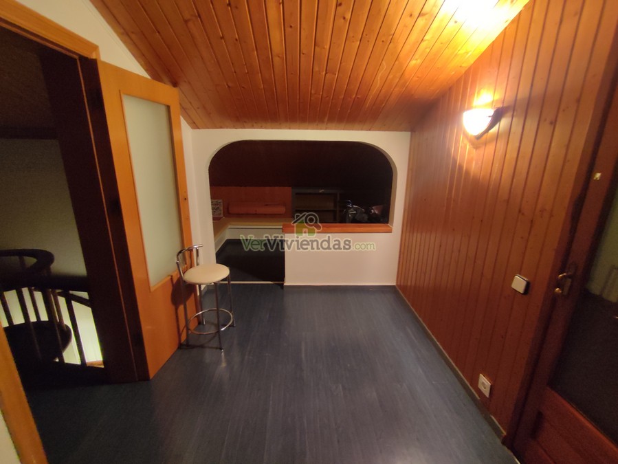 En la planta superior encontraremos la buhardilla con preciosas maderas, una habitación con zona de estudio y salida directa a una terraza privada, desde donde se aprecian bonitas vistas al entorno natural que rodea la vivienda, el pueblo y la piscina.