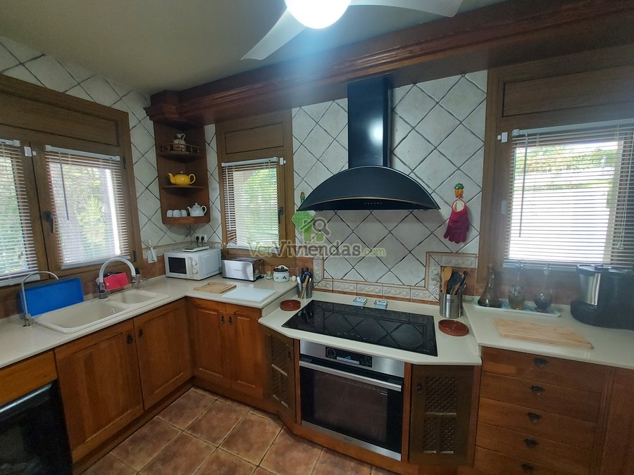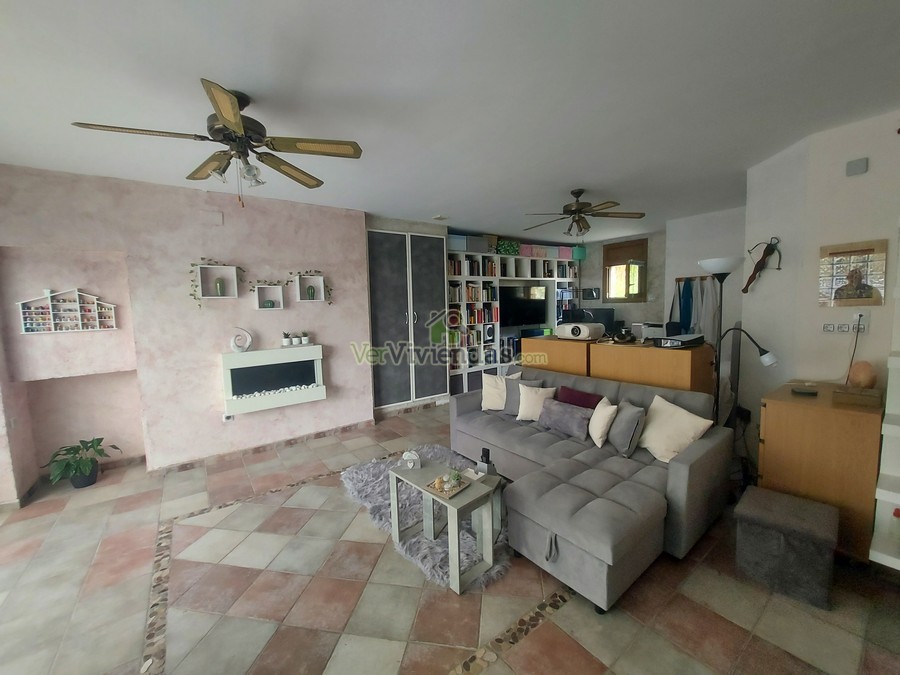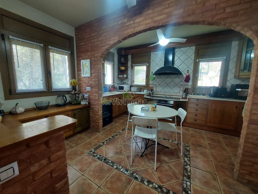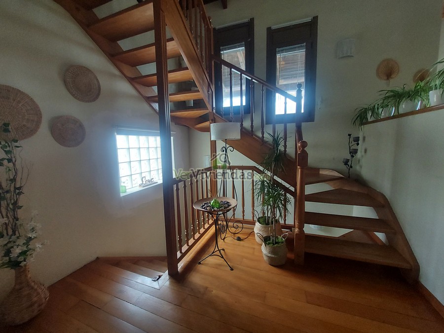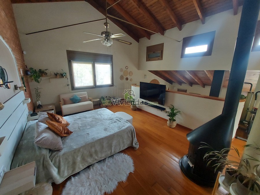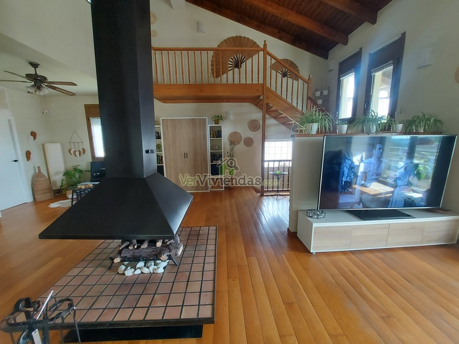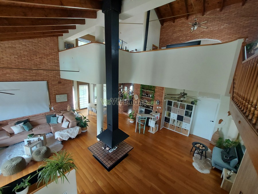 En la planta principal se ubica una amplia sala polivalente de 70 m², actualmente utilizada como despacho y sala de cine. Se trata de un espacio muy versátil y luminoso, acompañado de un aseo de cortesía y con la posibilidad de convertirse fácilmente en varias habitaciones dobles si se desea ampliar la zona de noche. Subiendo a la planta primera accedemos a un impresionante salón–comedor de 80 m², con techos de madera a doble altura y una chimenea central que aporta un ambiente cálido y acogedor. La cocina rústica de 20 m², abierta al comedor, dispone además de un práctico lavadero con salida directa al jardín. En este mismo nivel se encuentra un baño completo con plato de ducha y una terraza con vistas panorámicas que convierten este piso en uno de los espacios más agradables de la vivienda.