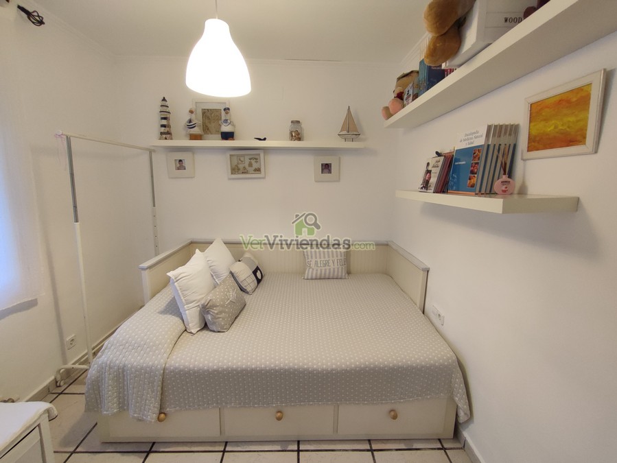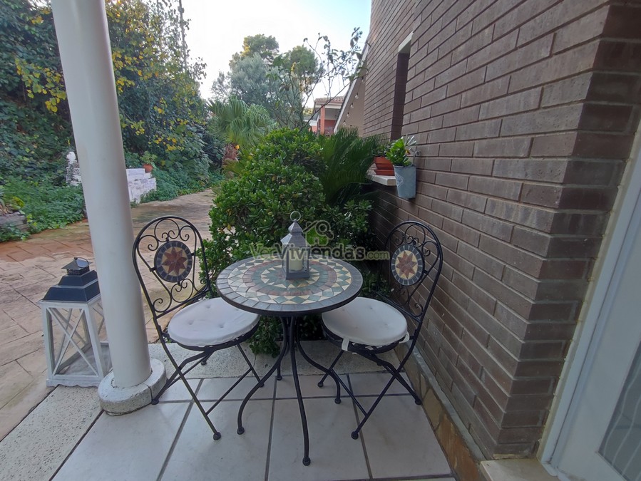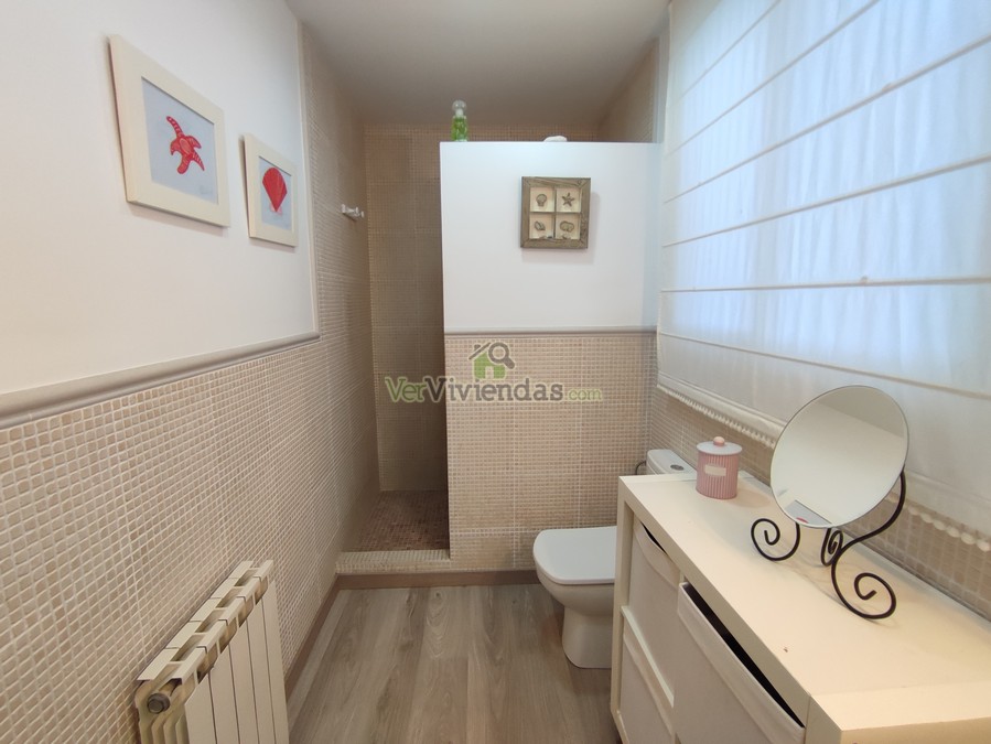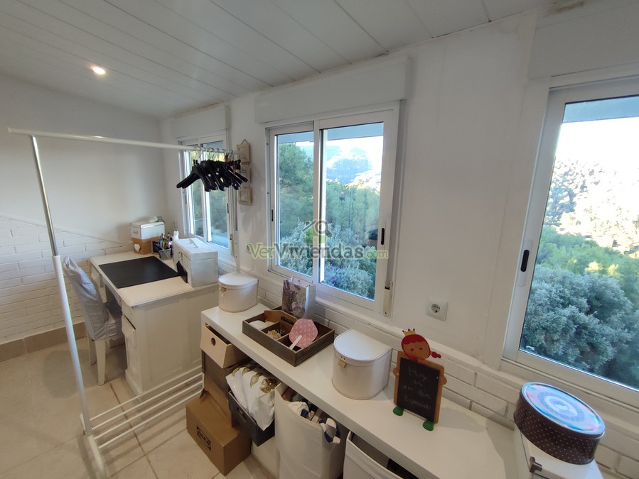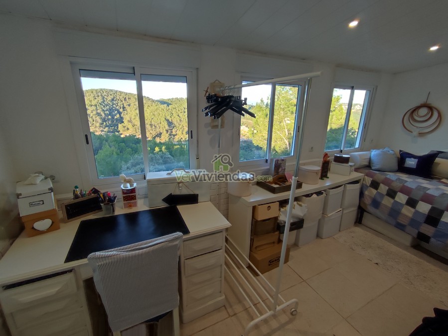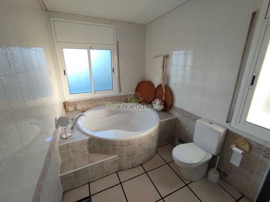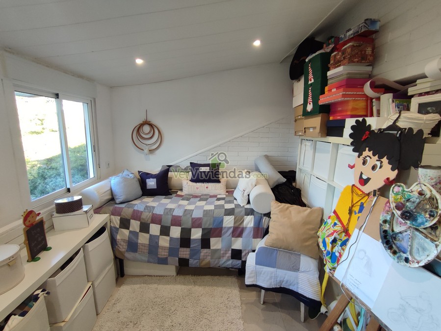 La planta superior dispone de dos habitaciones dobles con armarios empotrados, que comparten un baño con ducha y una gran bañera. En esta misma altura encontramos una terraza cubierta actualmente convertida en sala, perfecta como espacio adicional adaptable a distintos usos.