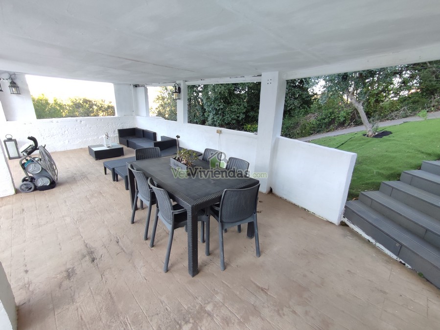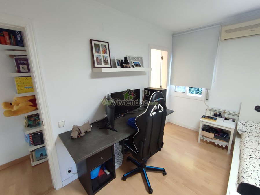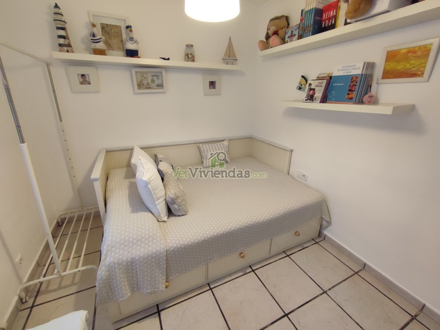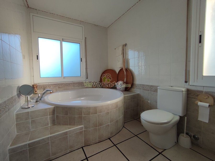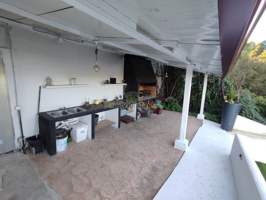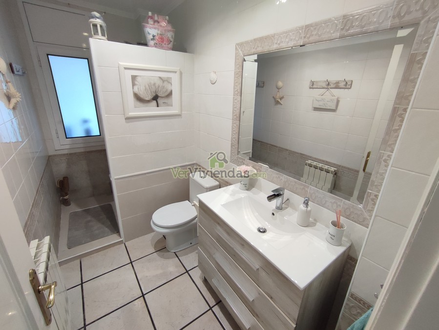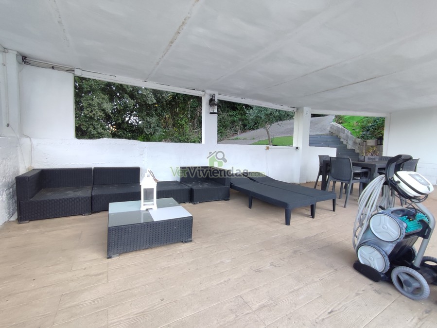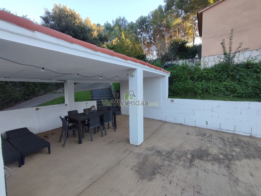 La planta superior dispone de dos habitaciones dobles con armarios empotrados, que comparten un baño con ducha y una gran bañera. En esta misma altura encontramos una terraza cubierta actualmente convertida en sala, perfecta como espacio adicional adaptable a distintos usos.