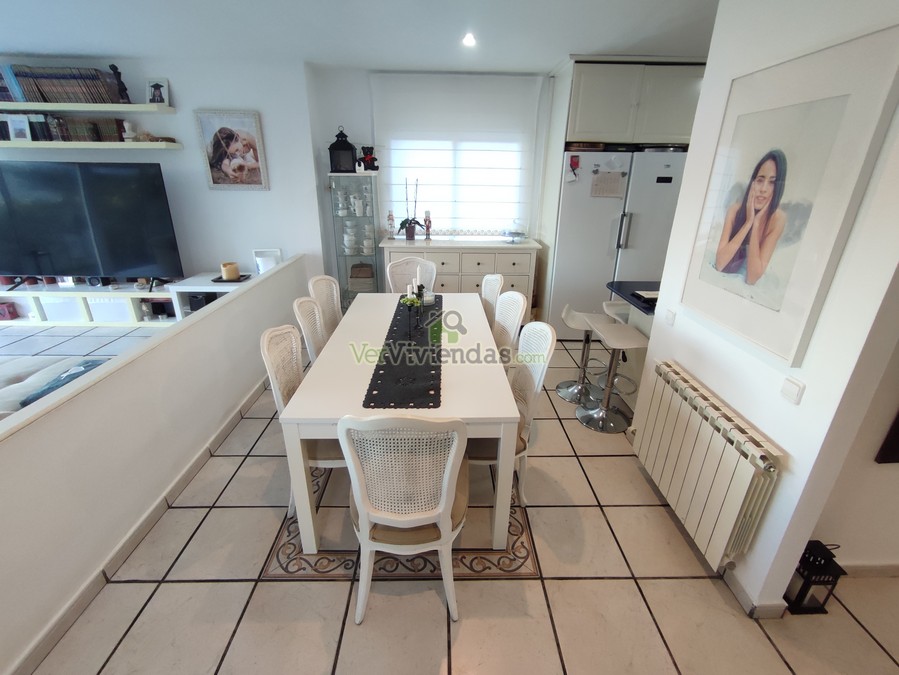Al acceder a la vivienda, nos recibe un luminoso salón–comedor con chimenea, un espacio amplio y agradable que conecta directamente con la cocina abierta, práctica y funcional para el día a día. En esta misma altura encontramos también una habitación doble y un baño completo.