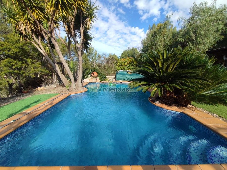 El exterior es uno de los grandes atractivos de la vivienda. La parcela, prácticamente llana y muy soleada, ofrece un gran porche ideal para comidas al aire libre, una espectacular piscina con vistas abiertas y una zona destinada a huerto, además de amplios espacios donde disfrutar del entorno natural y de la privacidad que ofrece la finca.