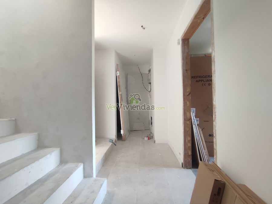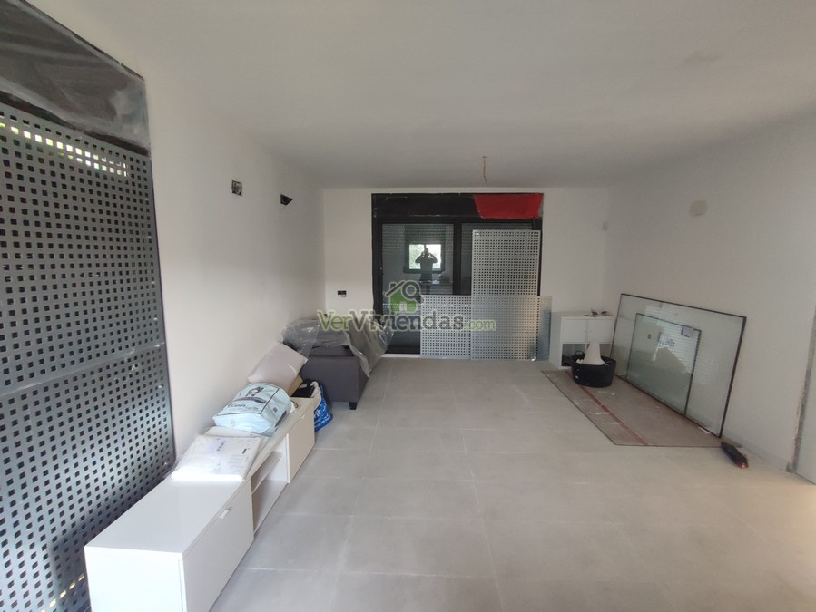El acceso principal nos lleva a la planta baja, donde encontramos una zona de 72 m² pendiente de redistribución y finalización de obra. Esta planta ofrece espacio suficiente para crear un amplio salón, una cocina abierta o independiente —según el proyecto deseado— y un primer baño, además de disponer de una estancia perfecta para destinar a habitación. En esta misma planta se ubica un aparcamiento cerrado de 24 m², ideal para vehículo y almacenaje.