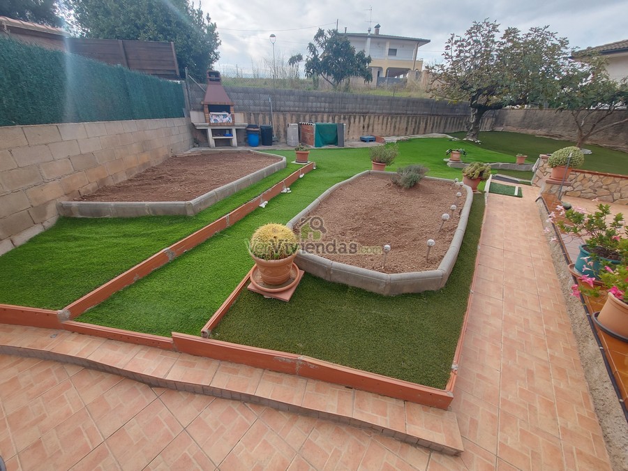 En la parcela encontramos zonas ajardinadas muy agradables y una barbacoa exterior, perfecta para reuniones con familia y amigos en un entorno tranquilo y soleado.