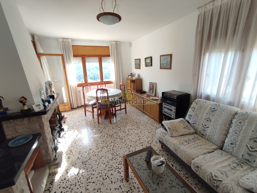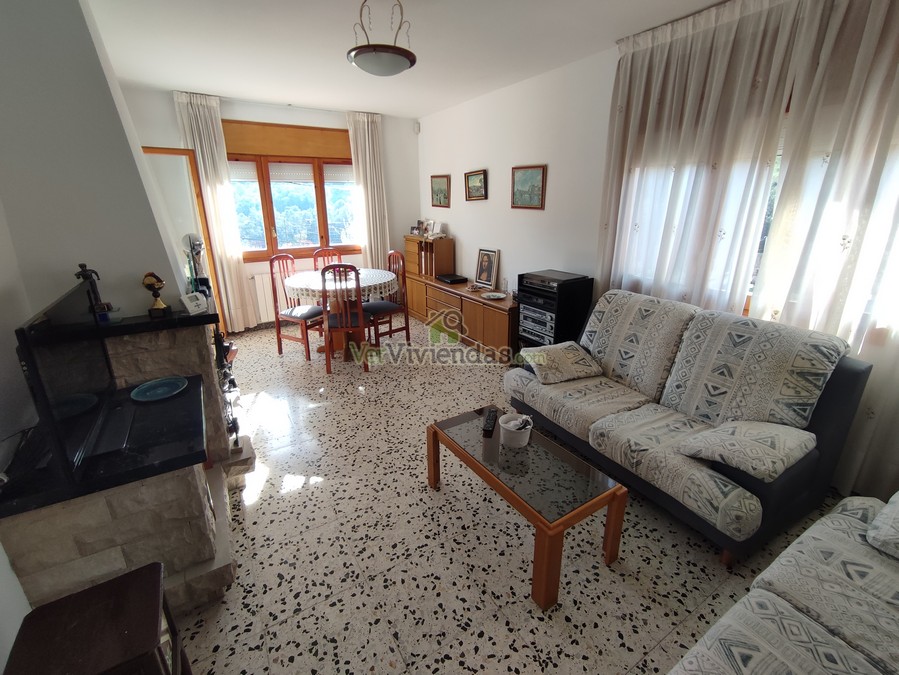 En la planta superior se desarrolla la vivienda principal, totalmente exterior y muy luminosa. Encontramos un salón-comedor con chimenea y salida a una segunda terraza, un espacio cálido y perfecto para relajarse disfrutando de las vistas. En esta misma planta se ubica la cocina office, amplia y equipada, junto a las tres habitaciones dobles, todas exteriores, y un baño completo con bañera en excelente estado. La distribución permite una vida muy cómoda, con estancias amplias y bien conectadas entre sí.