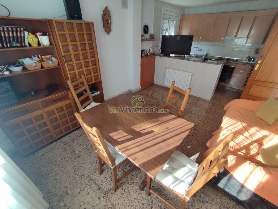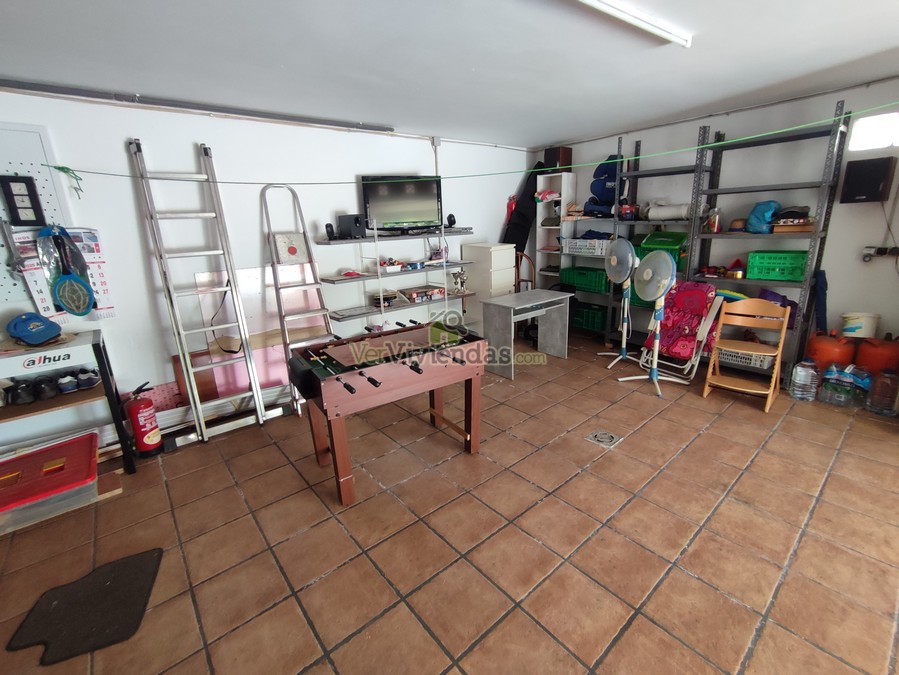 El acceso principal se realiza desde la planta situada a nivel de calle, donde se encuentra una zona diáfana muy agradable, actualmente distribuida como comedor con cocina americana y con salida directa a una amplia terraza ideal para comidas al aire libre. Este nivel dispone también de un baño completo y de una sala polivalente que permite múltiples usos: habitación adicional, zona de juegos, despacho o sala de ocio. El garaje y un espacio destinado a almacén complementan esta planta, aportando practicidad y comodidad para el día a día.