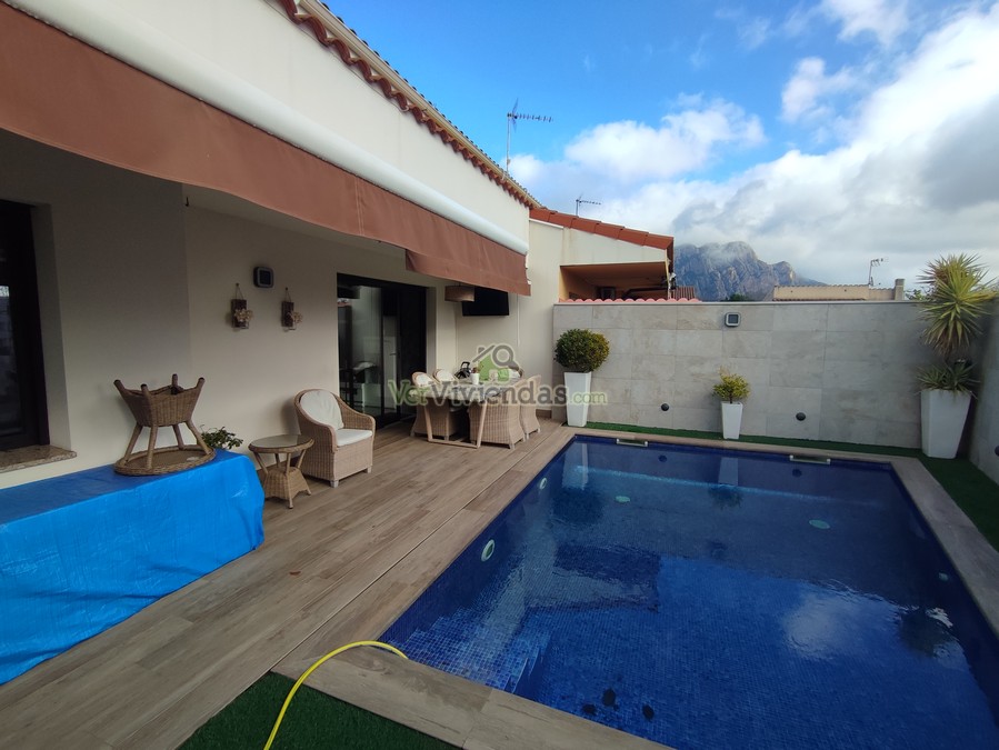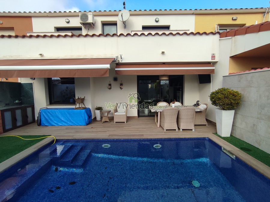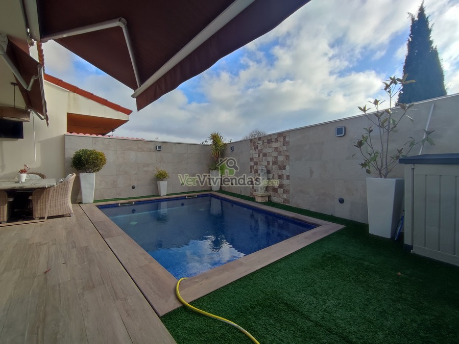 En la zona exterior ubicamos espectacular piscina con césped artificial.