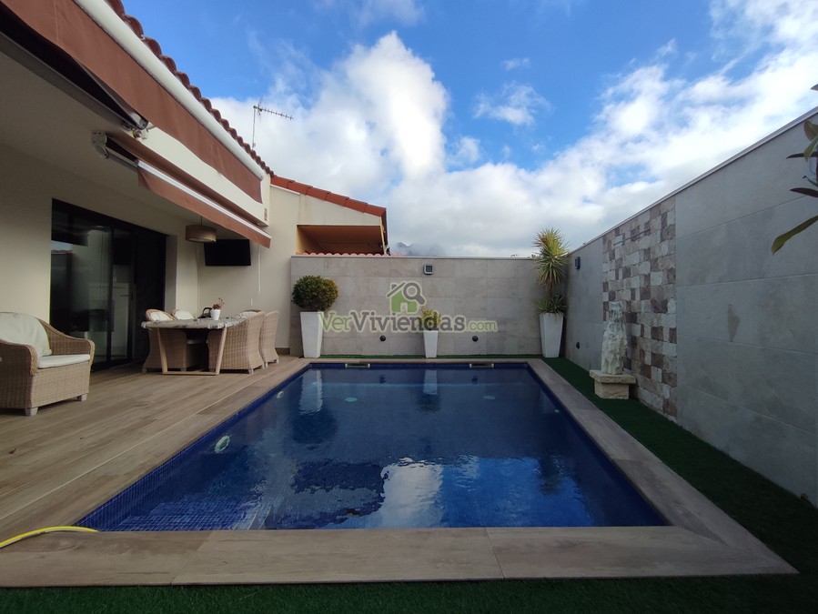 Planta Principal: Al entrar nos encontramos un bonito recibidor que nos da paso a gran salón/comedor abierto con cocina con isla, moderna y totalmente equipada con electrodomésticos de alta gama. En esta misma altura encontramos una habitación doble un baño completo con plato de ducha. Desde el salón/comedor tenemos acceso directo a la zona de la terraza y su espectacular piscina para disfrutar de los meses más calurosos del año.