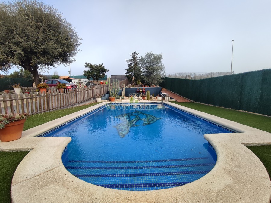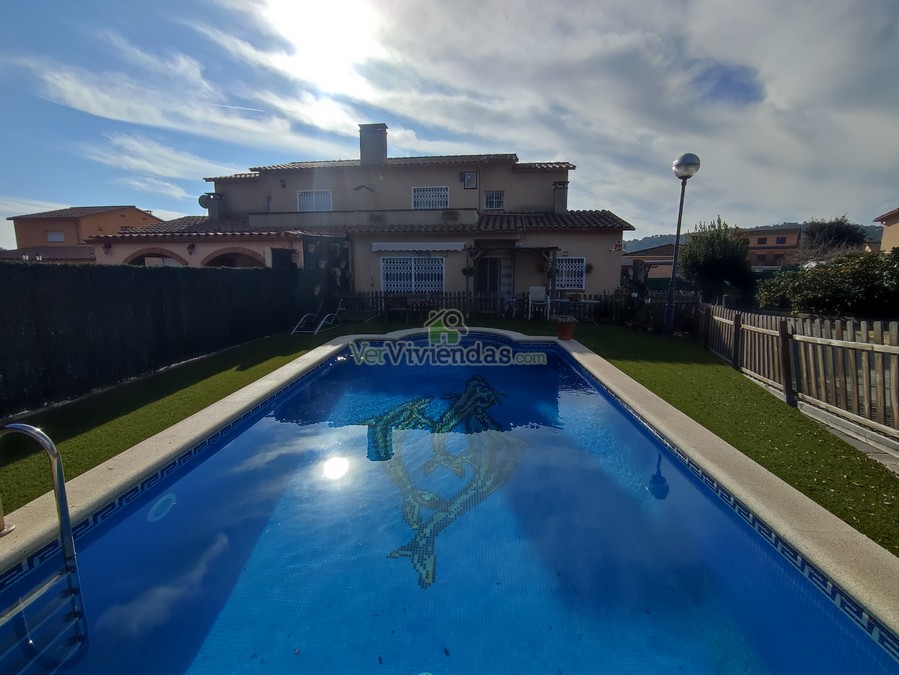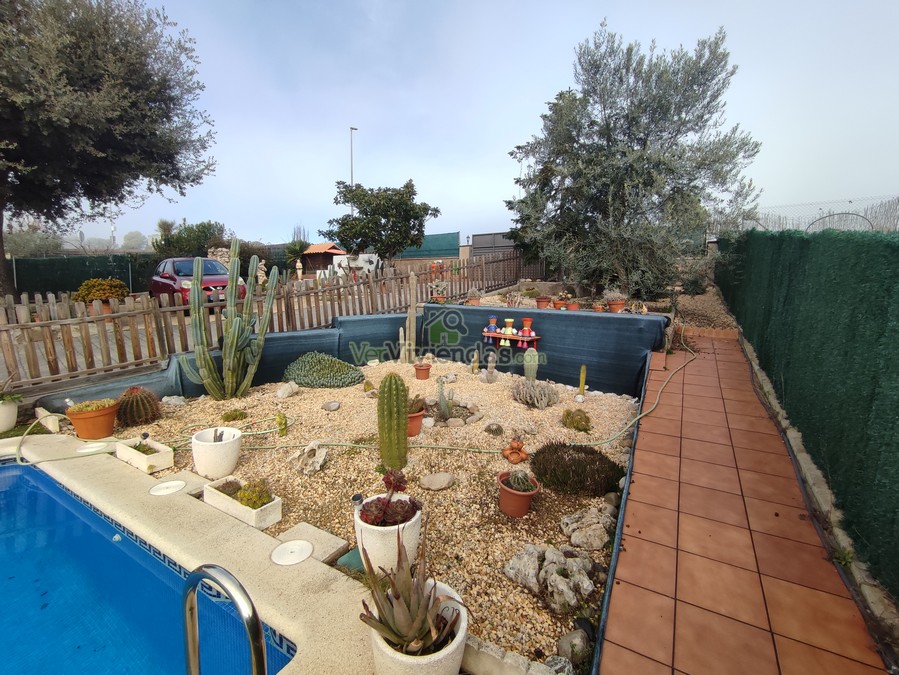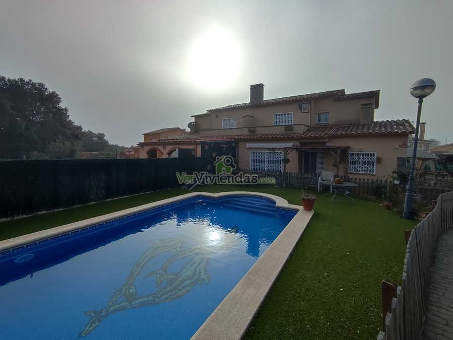 En el exterior encontramos la zona de la piscina con varias zonas destinadas a terraza, jardín y zona barbacoa.