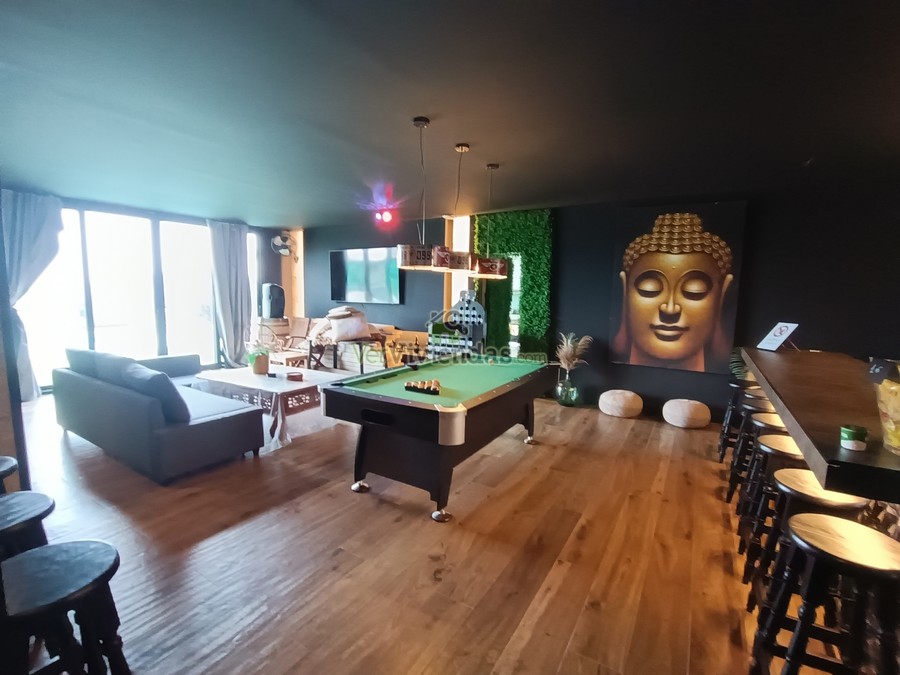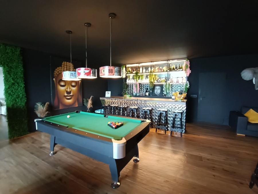 Planta Inferior: En esta altura encontramos gran estancia destinada a ocio, con zona de bar, sala de billar, gimnasio, un apartamento completamente equipado ideal para familiares, amigos o servicio y la zona del garaje. Desde esta altura tenemos acceso directo a la zona de la piscina con espectacular porche junto a la zona de barbacoa.