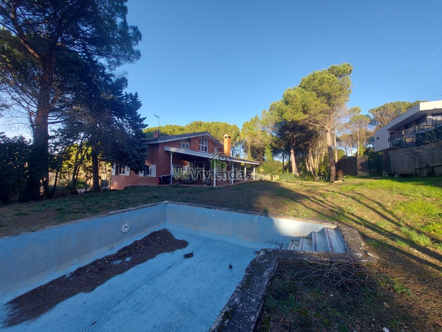 En el exterior encontramos parcela bastante llana con piscina que actualmente no está en funcionamiento. La parcela ofrece muchas posibilidades.