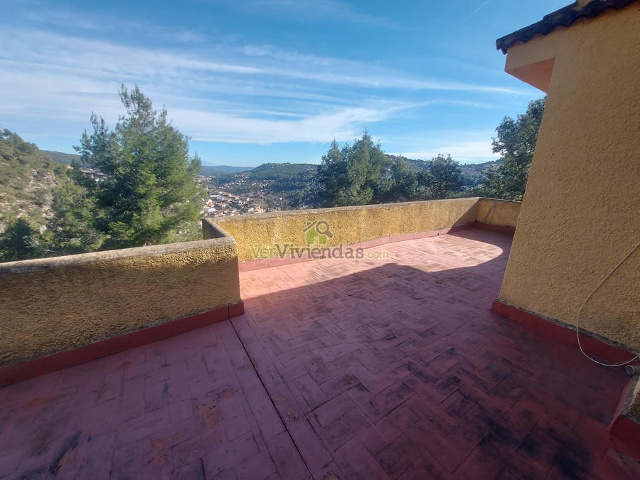 Planta Superior: Mediante un distribuidor tenemos acceso a una habitación individual, una habitación doble de gran tamaño con salida directa a preciosa terraza con vistas panorámicas y un baño completo con bañera para dar servicio a las habitaciones de esta altura.
